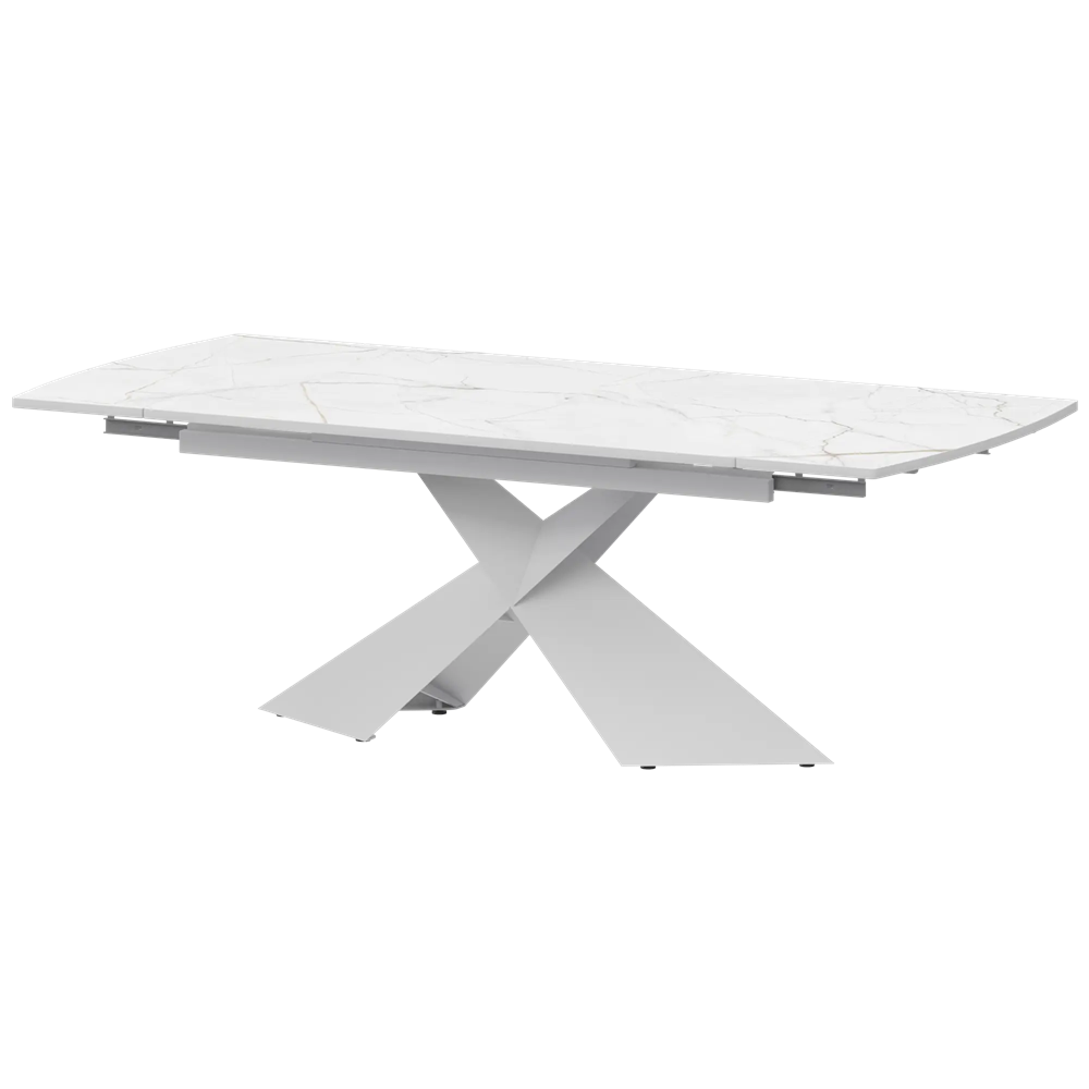 Стол раздвижной Модерн Обеденные столы в пластике Модерн 1400х800+300 (Н-3832) Азул/Белый муар 1400x800x750 Ширина 1400мм +300+300мм (2 вставки)
