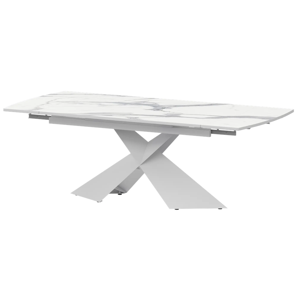 Стол раздвижной Модерн Обеденные столы в пластике Модерн 1400х800+300 (Н-3832) Мрамор Белый/Белый муар 1400x800x750 Ширина 1400мм +300+300мм (2 вставки)