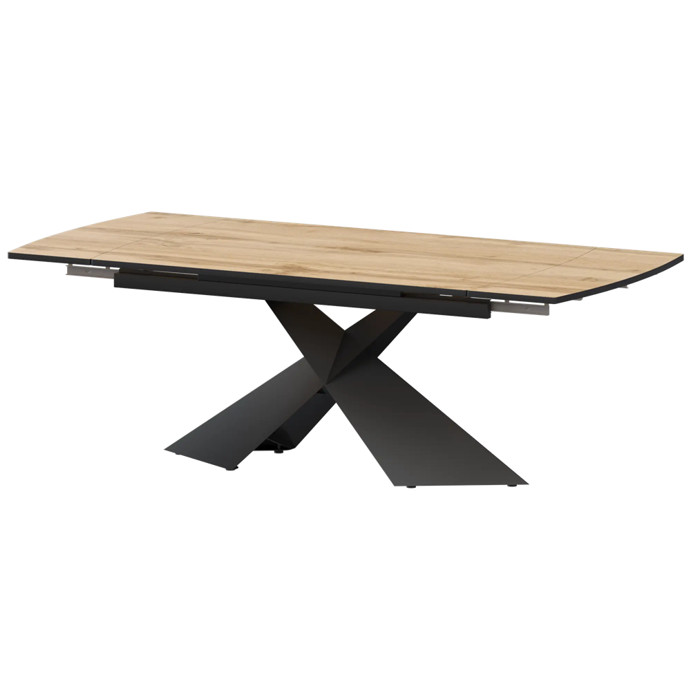 Стол раздвижной Модерн Обеденные столы в пластике Модерн 1400х945+300 (Н-3833) Дуб Вотан/Черный муар 1400x945x750 Ширина 1400мм +300+300мм (2 вставки)