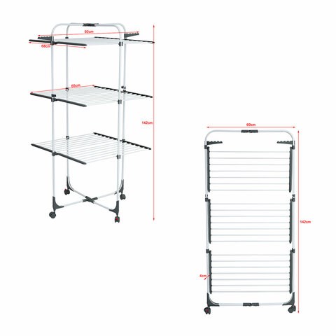 Данная сушилка отличается от ряда конкурентов складным основанием на колесиках со стопорами для удобного использования и хранения, что существенно экономит пространство, когда вы не используете ее по назначению.