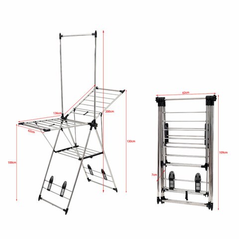 Размер – 62х109х7 см в сложенном виде и 200х136х62 см со всеми разложенными створками. Выдерживает нагрузку до 40 кг. Устойчивая, вместительная и компактная в хранении, при необходимости быстро и легко складывается и убирается. Заменяет до 18 метров бельевой веревки!