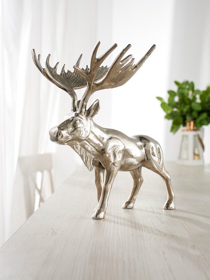 «Лось» - это выбор тех, кто ценит лаконичность и стиль. Большие размеры и благородный серебристый оттенок создают праздничное настроение без лишней вычурности. Добавьте нотку зимнего волшебства в свой интерьер с этим эффектным сувениром.