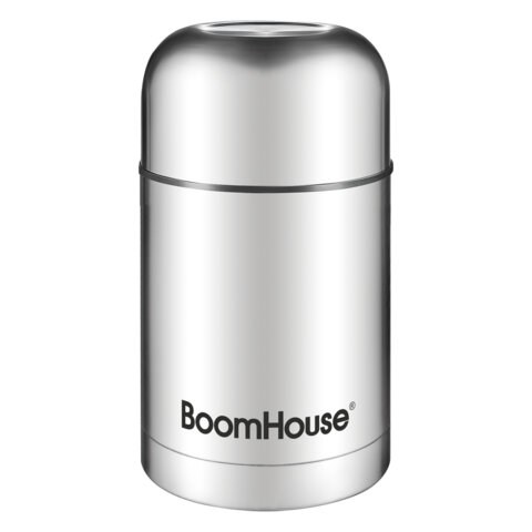 Термос оснащен пробкой со специальной кнопкой для стравливания излишнего давления в колбе, что позволяет легко открыть его без возможности случайно обжечься. Термос BoomHouse подойдет для сохранения температуры первых или вторых блюд, напитков или даже мороженого. Ширина горлышка 8 см позволяет есть прямо из термоса, как тарелку также можно использовать вместительную крышку.