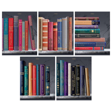 Серия тетрадей А5 формата, 96 листов. Обложка - мелованный картон. Внутренний блок: офсетная бумага, плотность 60 гр., клетка, красные поля. Белизна: 100% Вид крепления:скоба. Вид отделки: ламинац.Soft-touch 3D фольга.