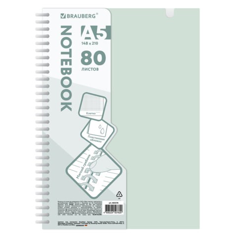 Прочная пластиковая обложка надежно защищает внутренний блок от повреждений и влаги, продлевая срок службы тетради. Обложка тетради оснащена специальной вырубкой для удобного крепления ручки. Внутри – 80 листов высококачественной офсетной бумаги плотностью 70 г/м2 и белизной 100%, обеспечивающей комфортное письмо. Удобная линовка в клетку с полями помогает вести структурированные записи. Листы скреплены мягким силиконовым гребнем, что обеспечивает удобство использования тетради и комфорт при письме. Тетрадь формата А5 – это удобное и практичное решение для учебы, работы и повседневных заметок. Она компактна, легко помещается в сумку или рюкзак, но при этом вместительна для удобного письма.