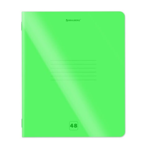 Тетрадь формата А5 с двойной обложкой: внешняя выполнена из высококачественного износостойкого полупрозрачного пластика неоново-зеленого цвета, внутренняя — из качественной офсетной бумаги 110 г/м2. Преимущество таких тетрадей заключается в том, что для сохранения внешнего вида не нужно покупать дополнительную обложку. Внутренний блок плотностью 60 г/м2 из офсетной бумаги содержит 48 листов в клетку с полями. Скрепка надежно скрепляет листы между собой.