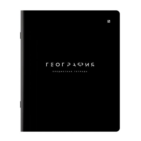 Тетрадь по географии формата А5 с двойной обложкой: внешняя выполнена из высококачественного износостойкого черного пластика, внутренняя – из качественной офсетной бумаги. Преимущество таких тетрадей заключается в том, что для сохранения внешнего вида не нужно покупать дополнительную обложку. На подкладных листах содержится справочный материал по предмету. Внутренний блок плотностью 60 г/м2 из офсетной бумаги содержит 48 листов в клетку с полями. Белизна блока - 100%. Скрепка надежно соединяет листы между собой.