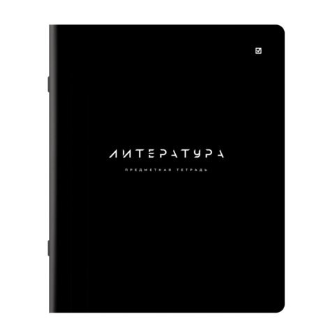 Тетрадь по литературе формата А5 с двойной обложкой: внешняя выполнена из высококачественного износостойкого черного пластика, внутренняя – из качественной офсетной бумаги. Преимущество таких тетрадей заключается в том, что для сохранения внешнего вида не нужно покупать дополнительную обложку. На подкладных листах содержится справочный материал по предмету. Внутренний блок плотностью 60 г/м2 из офсетной бумаги содержит 48 листов в линию с полями. Белизна блока - 100%. Скрепка надежно соединяет листы между собой.