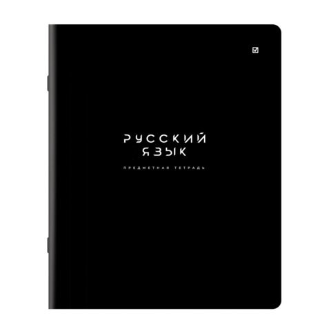 Тетрадь по русскому языку формата А5 с двойной обложкой: внешняя выполнена из высококачественного износостойкого черного пластика, внутренняя – из качественной офсетной бумаги. Преимущество таких тетрадей заключается в том, что для сохранения внешнего вида не нужно покупать дополнительную обложку. На подкладных листах содержится справочный материал по предмету. Внутренний блок плотностью 60 г/м2 из офсетной бумаги содержит 48 листов в линию с полями. Белизна блока - 100%. Скрепка надежно соединяет листы между собой.