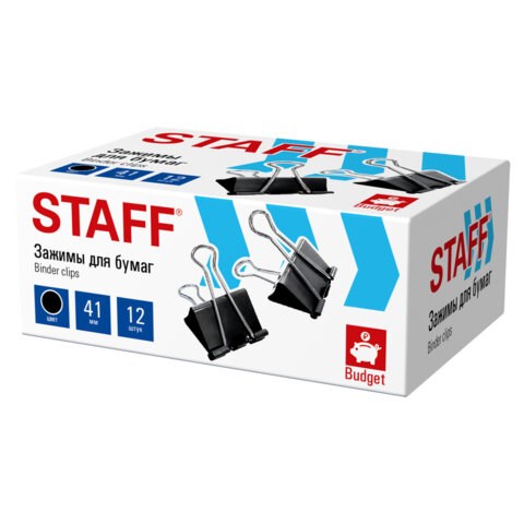Изготовлены из стали с черным покрытием. Позволяют скреплять до 200 листов. Не деформируют бумагу. Ширина зажима – 41 мм. Поставляются по 12 штук в картонной коробке.