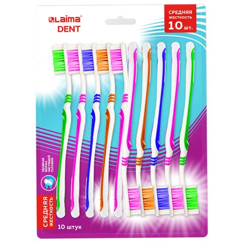 Зубные щётки LAIMA -идеальный выбор для всей семьи, обеспечивающий качественную гигиену полости рта. Щетина средней жесткости обеспечивает максимальное очищение, щетинки эффективно удаляют налет и бактерии, предотвращая кариес и зубной камень Компактная головка щетки легко проникает в труднодоступные места. Удобная ручка для комфортного захвата.