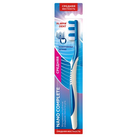 Зубная щетка LAIMA — идеальный выбор для всей семьи, обеспечивающий качественную гигиену полости рта. Средняя жесткость обеспечивает деликатное очищение. Разноуровневые щетинки эффективно удаляют налет и бактерии, предотвращая кариес и зубной камень.